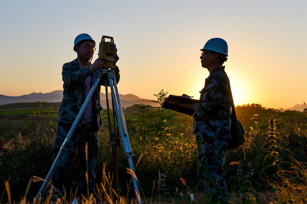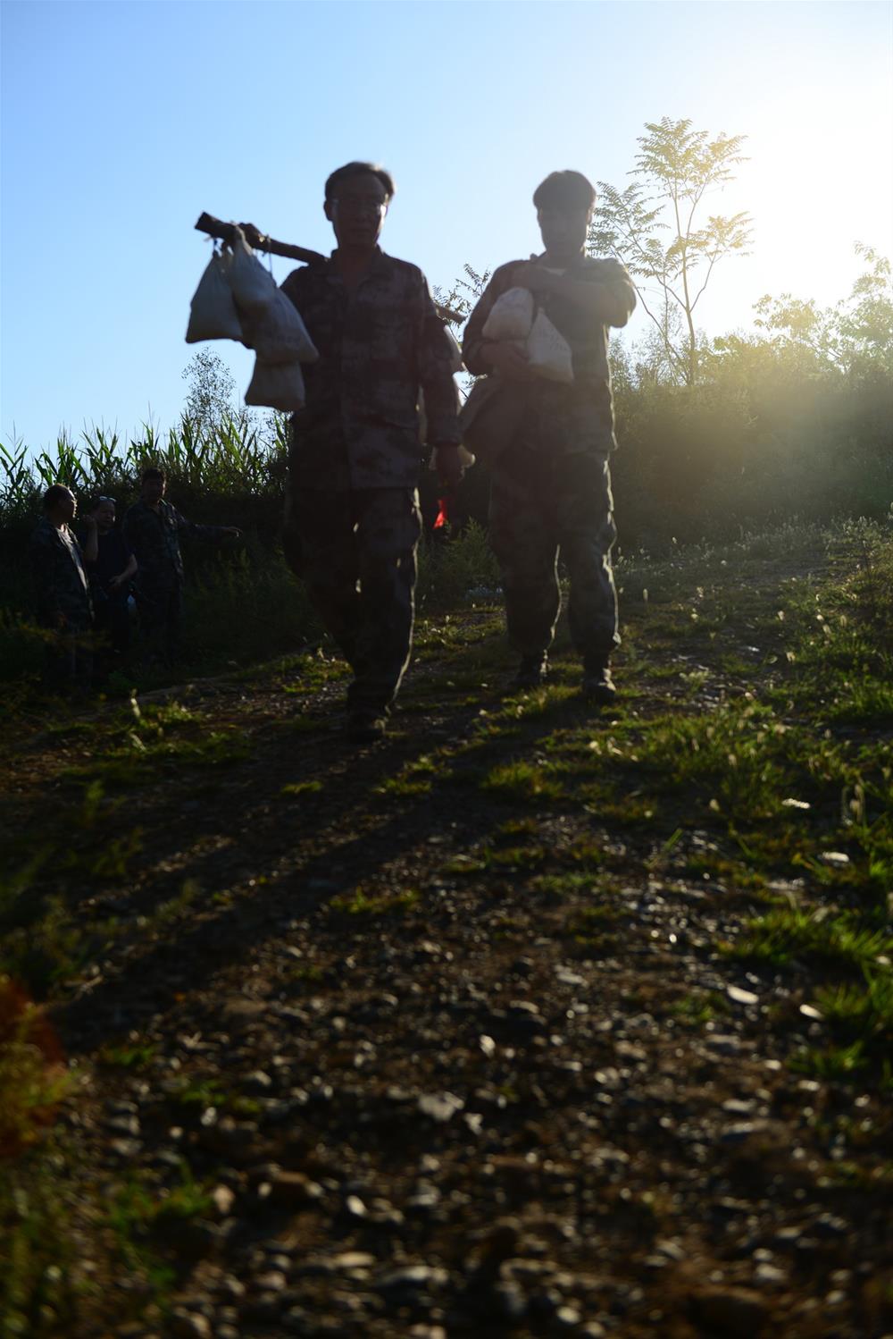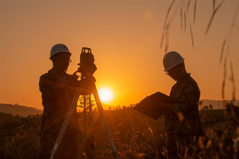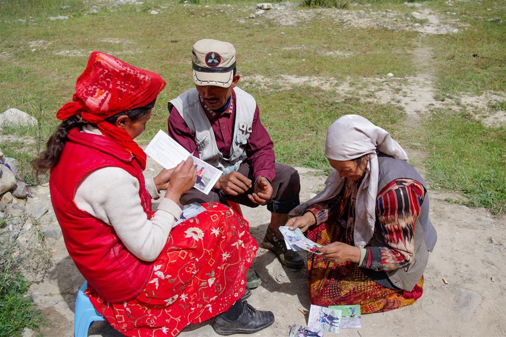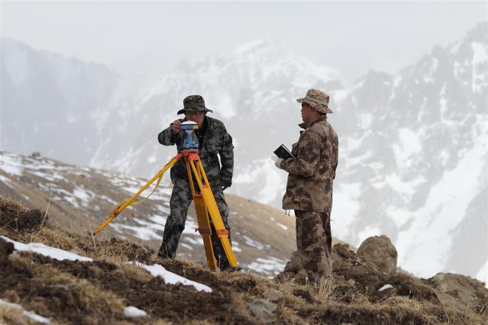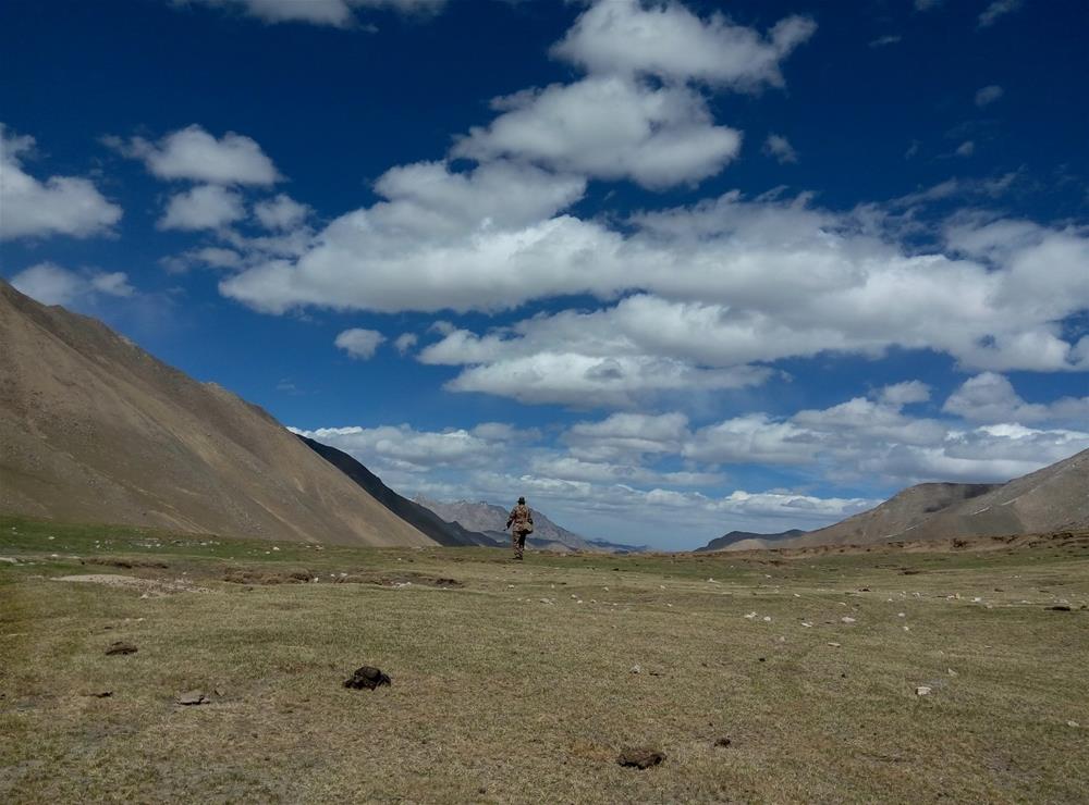 样品采集(地矿二院都鹏飞)浅井施工(地矿二院张旭东) 夕阳无限(地矿三院张明磊)路线穿越前的会议、 路线穿越在5400米(地调院董卫东)